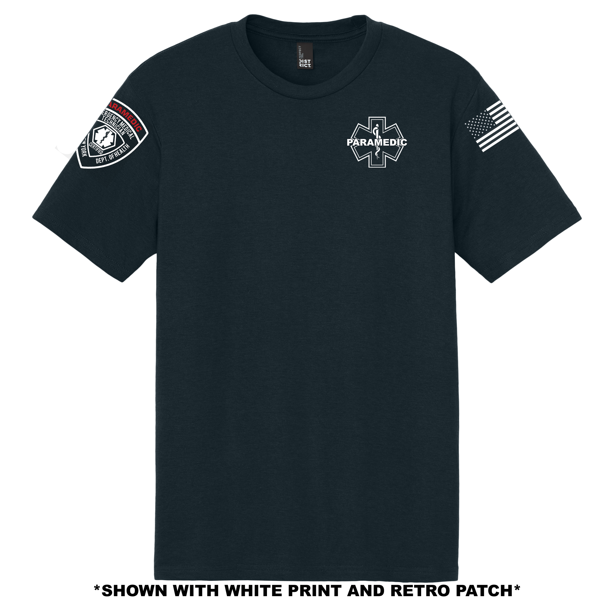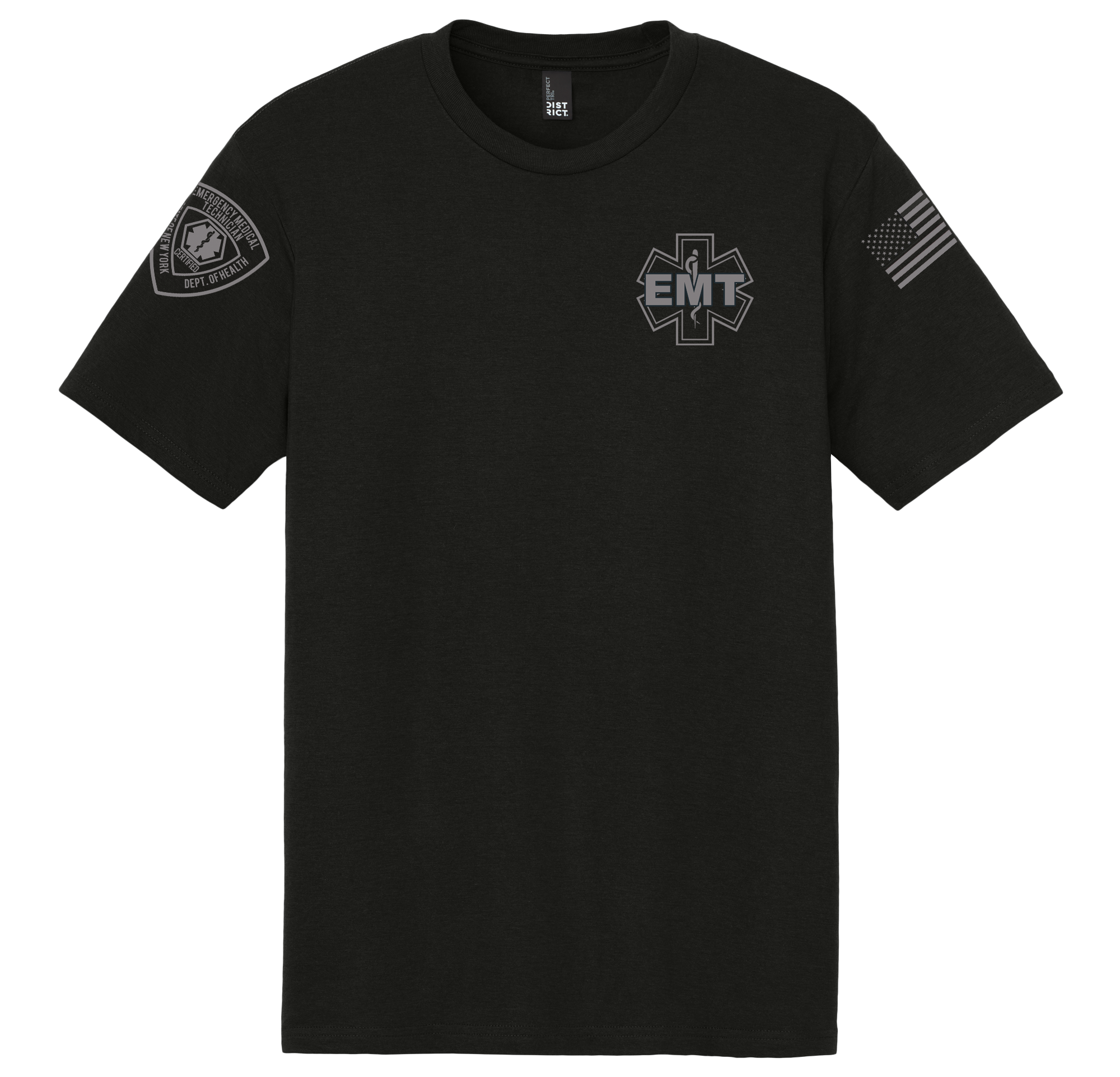 Each shirt will be printed with the following logos matching your chosen EMS certification (EMT, AEMT, Paramedic, EMS):